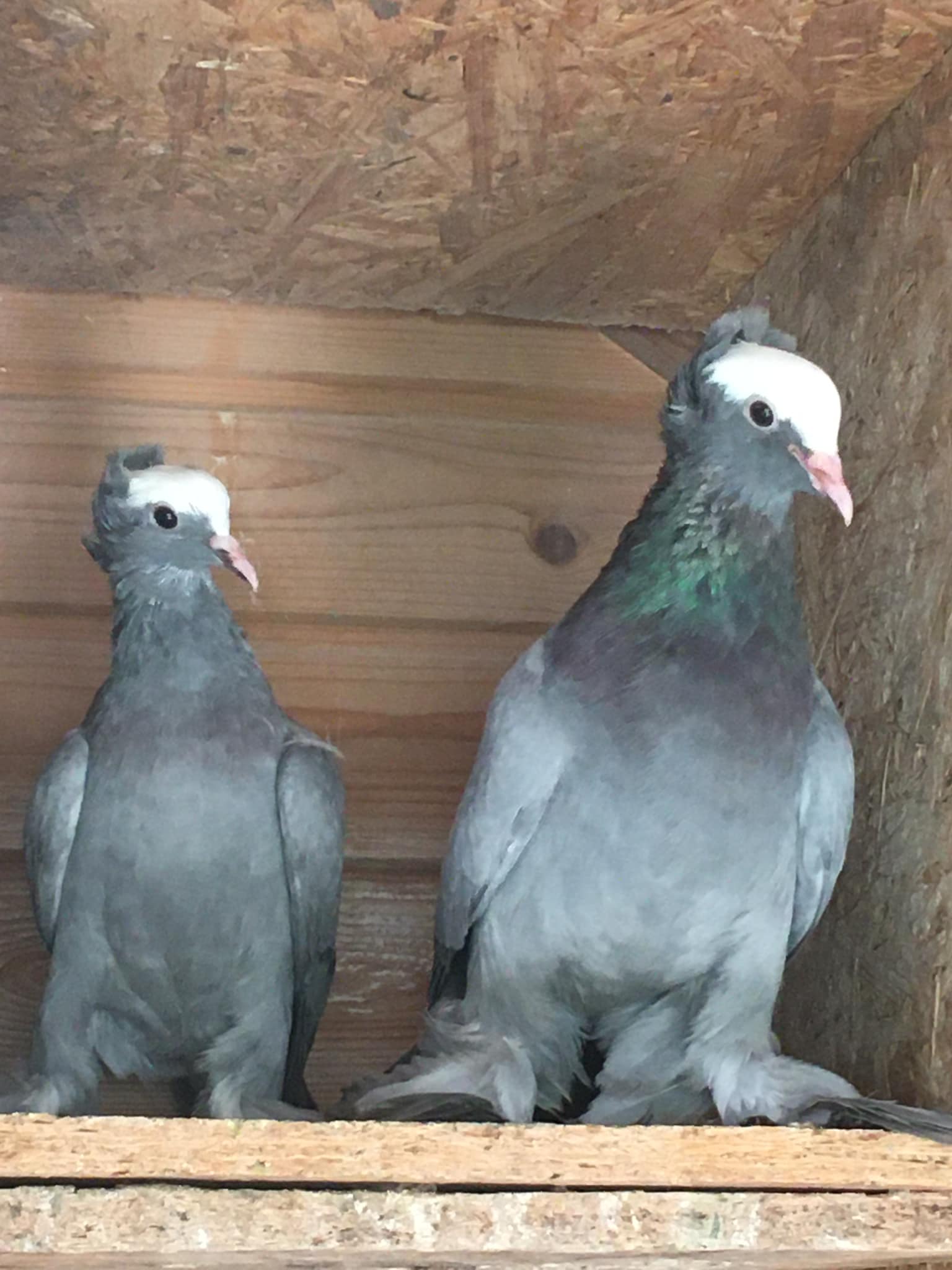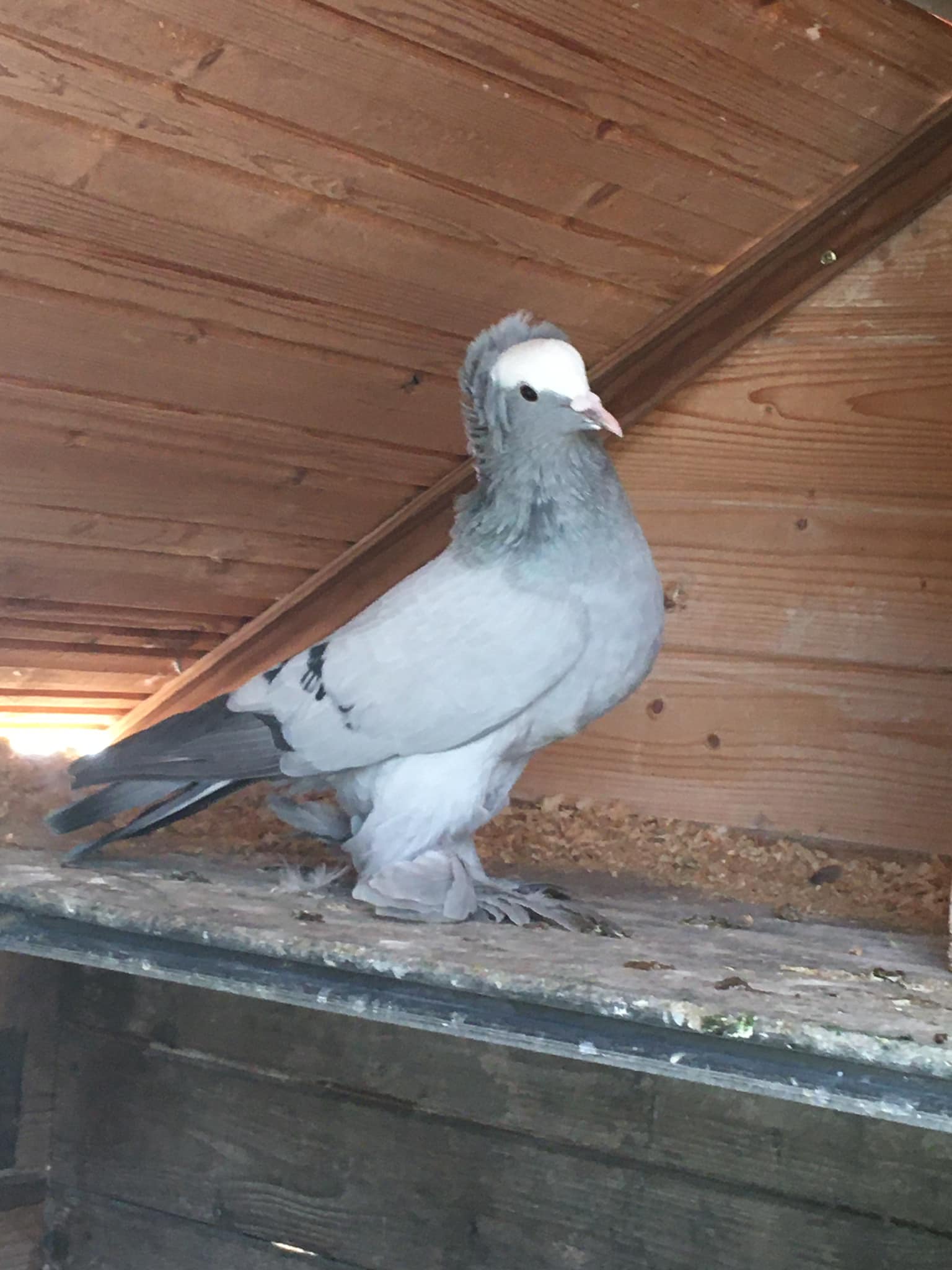 kräftige, veredelte Feldtaubengestalt mit Rundhaube und fast waagerechter Haltung, glattfüßig oder mit dichter, mittellanger Fußbefiederung