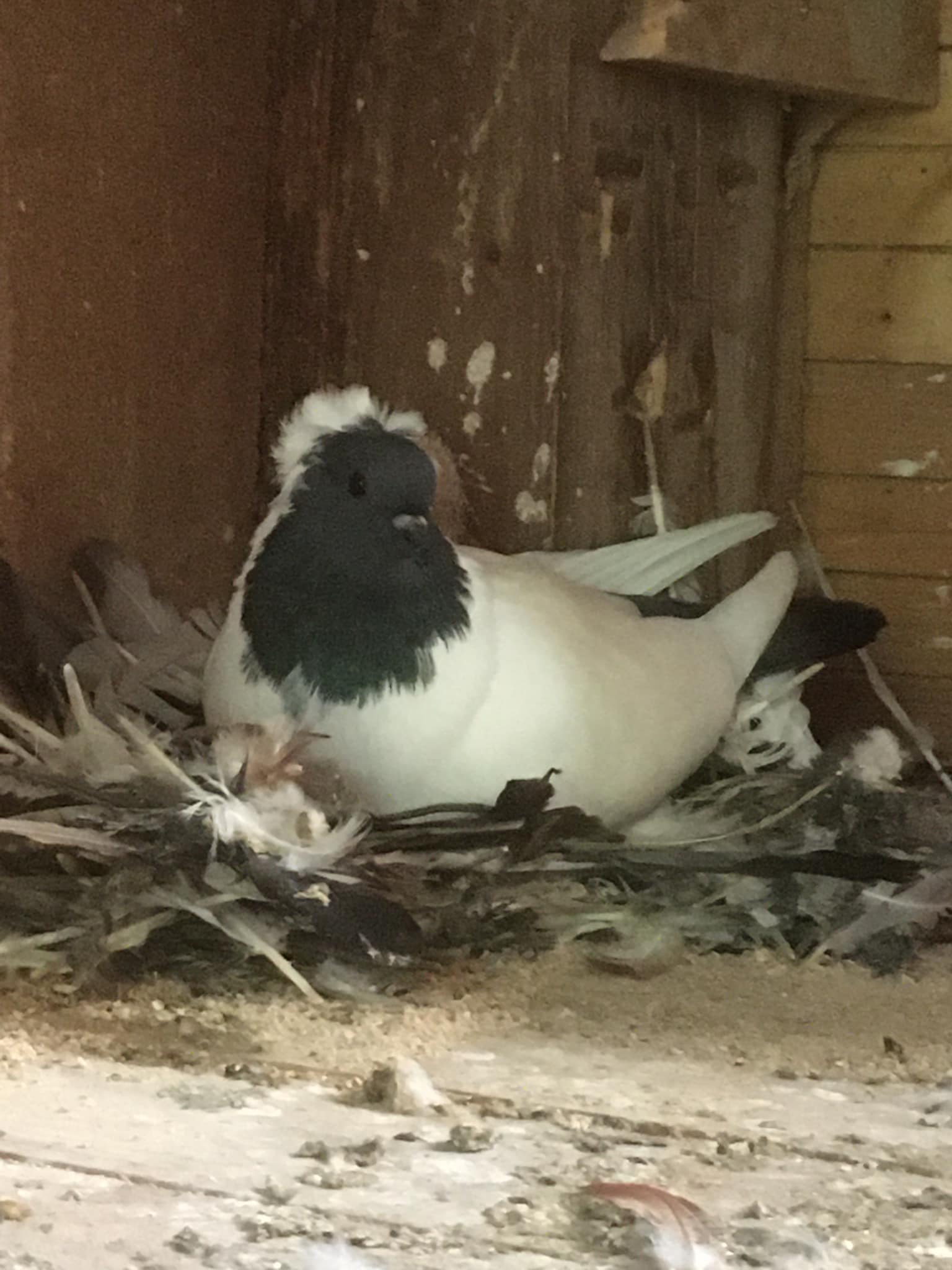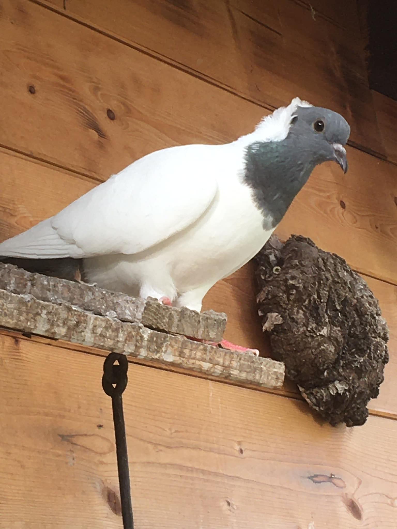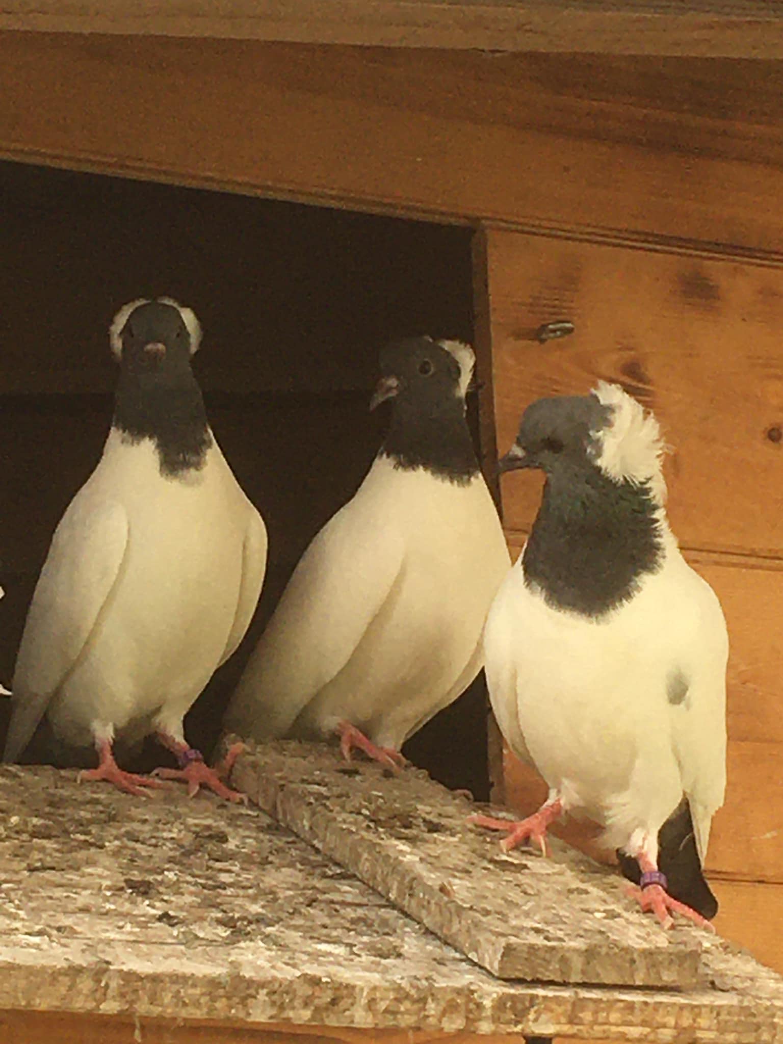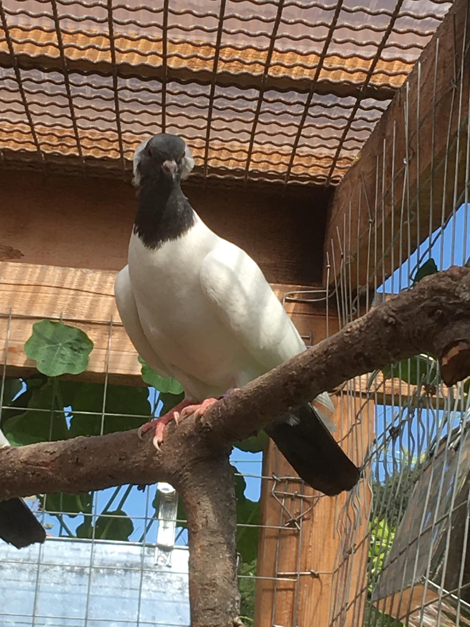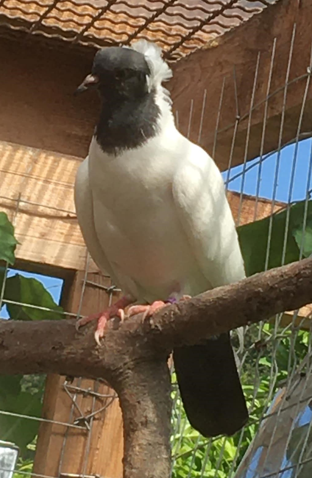 kräftige, veredelte Feldtaubengestalt mit Rundhaube und fast waagerechter Haltung, glattfüßig