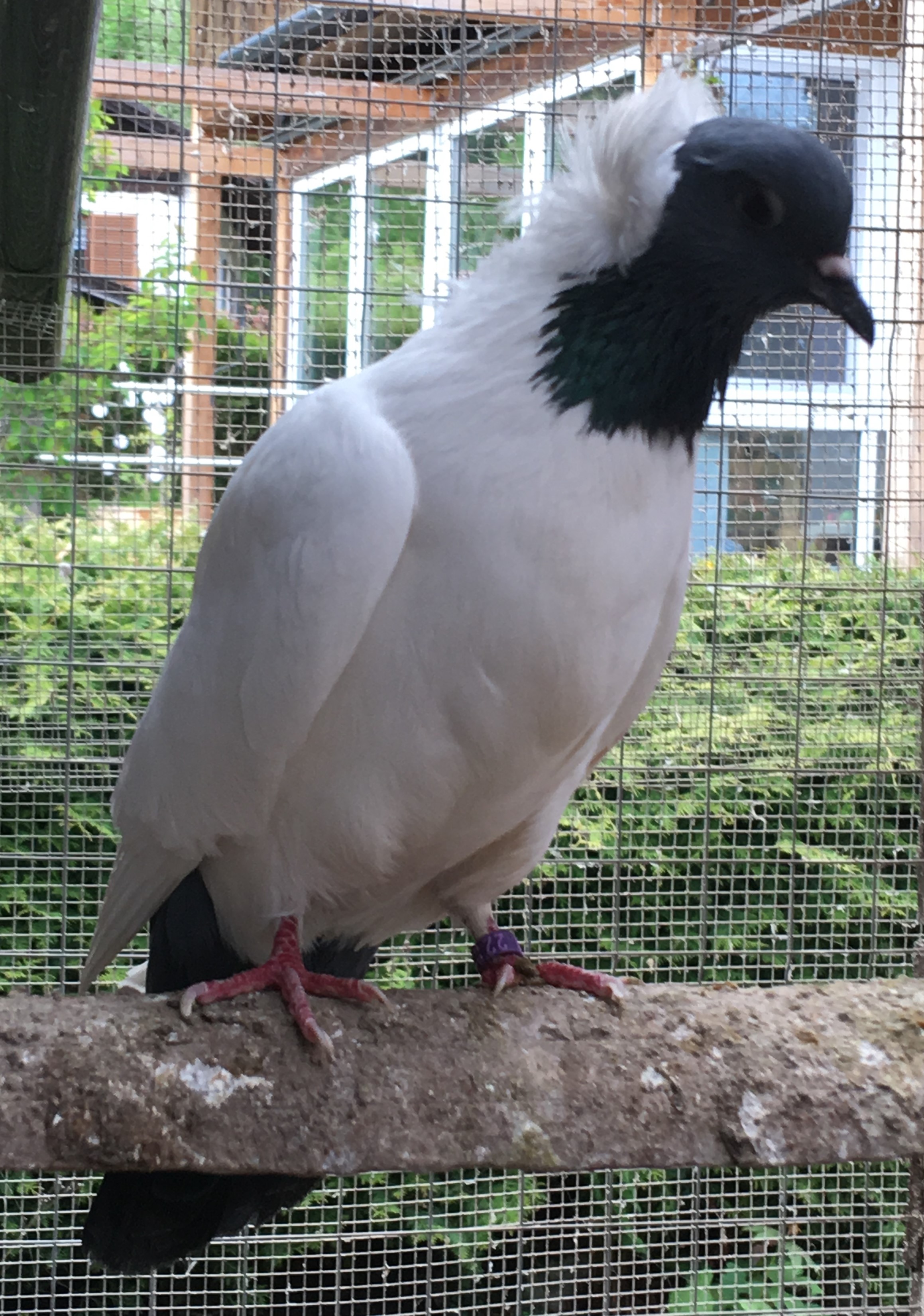 kräftige, veredelte Feldtaubengestalt mit Rundhaube und fast waagerechter Haltung, glattfüßig